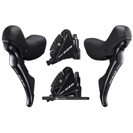 Coppia di comandi Shimano 105 R7000 per freni a disco idraulico tipo flat mount.