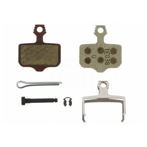 Coppia di pastiglie organiche con supporto in alluminio originali Sram specifiche per freni a disco strada Red eTap AXS e Force eTap AXS con pinza costruita in due blocchi o freni a disco MTB serie Level ed Elixir.